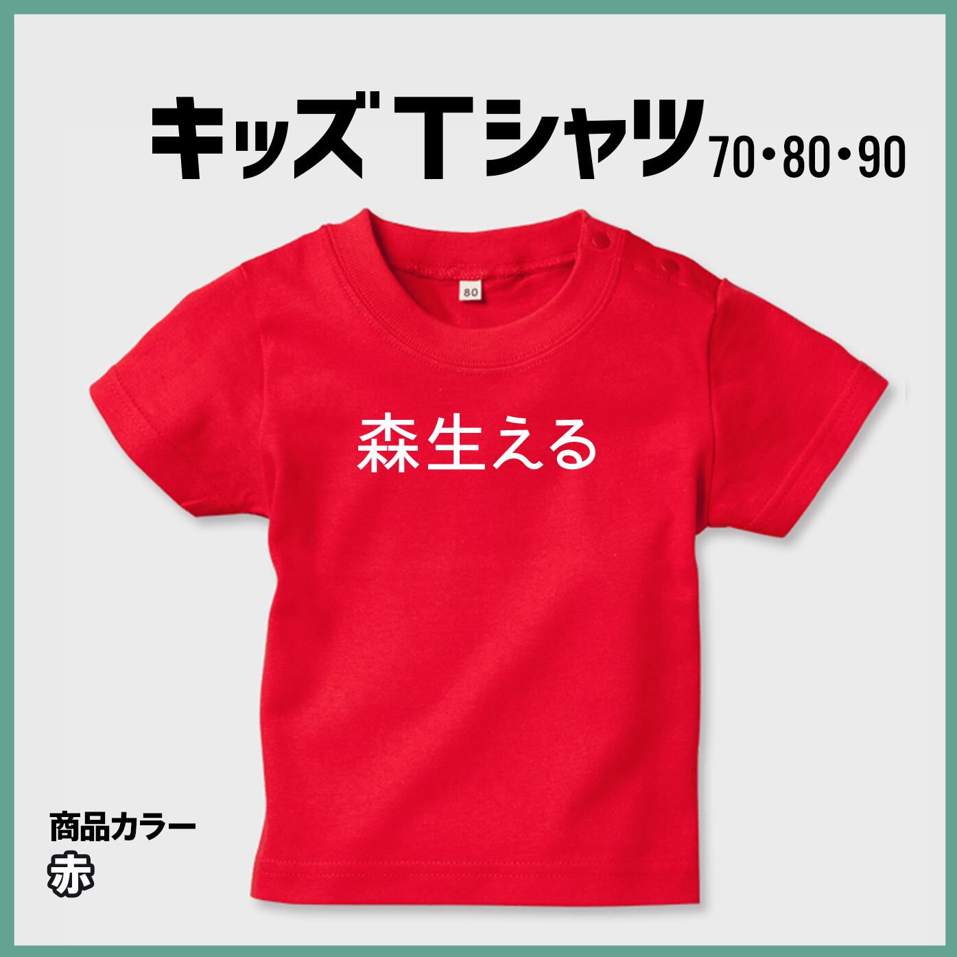 【森生える(A)】キッズTシャツ/ネイビー・デイジー・赤
